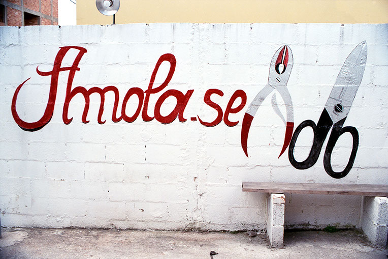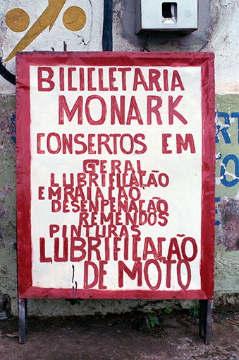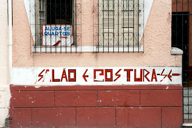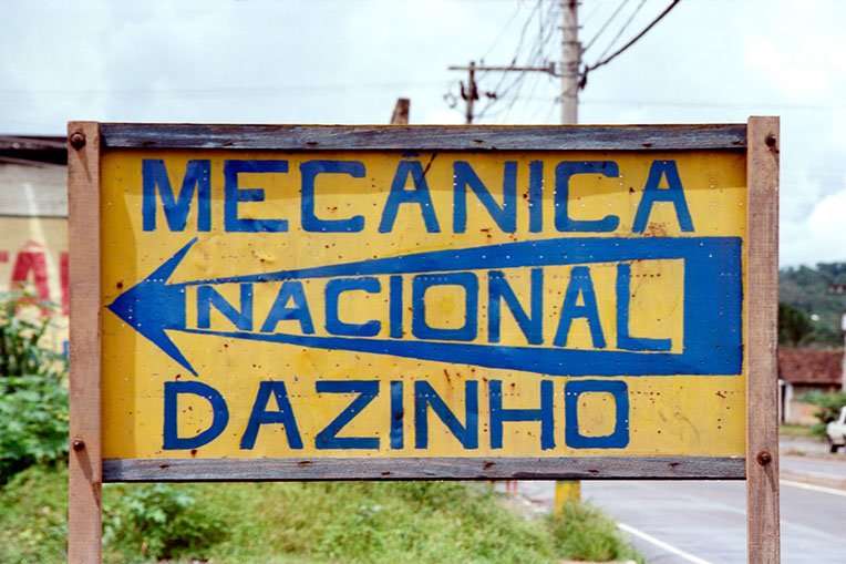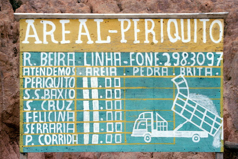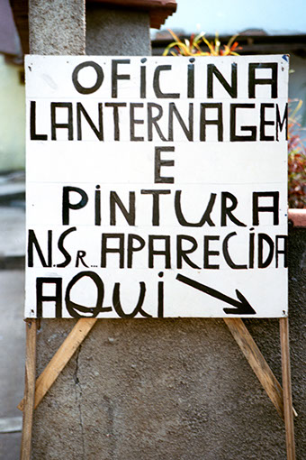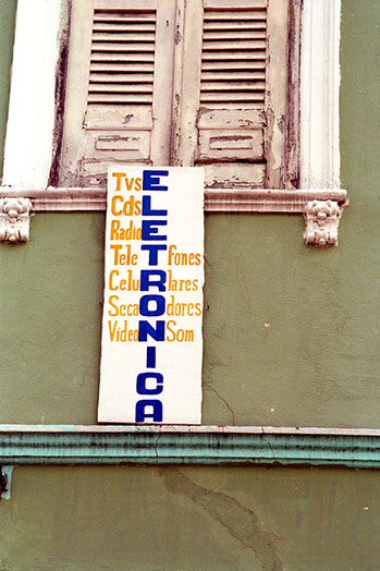 In 1998, researcher, designer and artist Marcelo Drummond set off on a journey to the states of Minas Gerais, Bahia and Rondônia capturing images of signs and signboards. The outcome fed a database with 1,200 photographs classified by a variety of standpoints: morphological, linguistic and geographic. The focus here is not the craft of the sign painter or the sign maker, but rather the spontaneous manifestations of ephemeral and anonymous nature. “For Sale;” “Knife Sharpening;” “Sewing Services;” “For Rent;” “Manufacturing;” “Repair Services”. The amazing aspect in the images as a whole is the inventiveness to build communication strategies, generally driven by the primary need of survival.