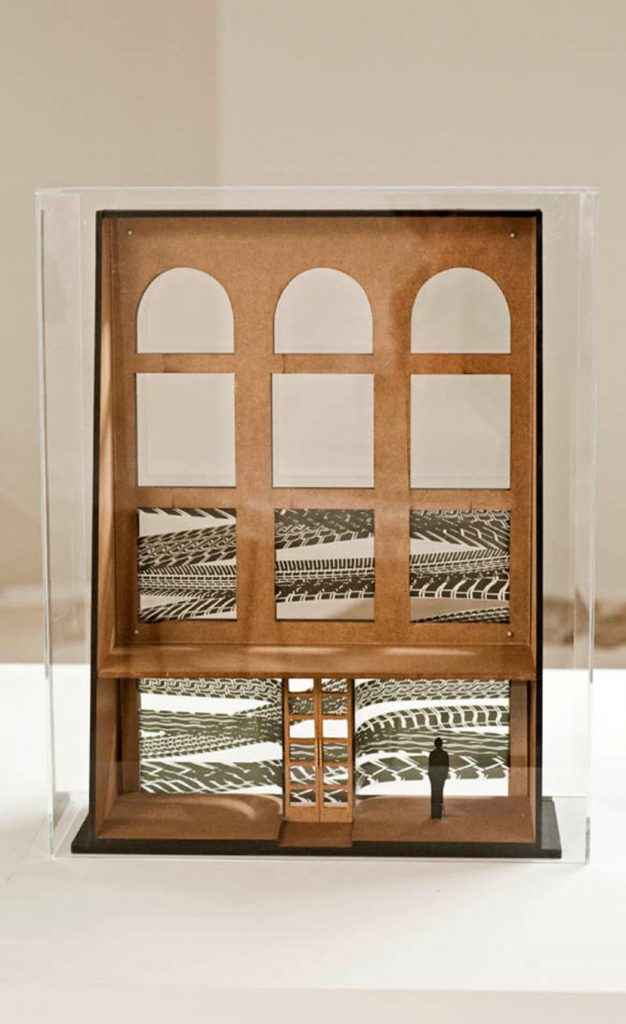 2004, Centro Cultural de España, Montevidéu, Uruguai / Maquete: Acrílico, gravação e corte a laser, impressão digital sobre vinil adesivo, pintura sobre madeira, 60 x 43 x 20 cm - Execução: Renato Pera e Marcelino Ros Lopez