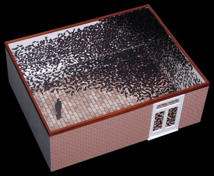 2005, La Médiatine, Centre Culturel Woluwe Saint-Lambert, Bruxelas, Bélgica / Maquete: Acrílico, impressão digital sobre vinil adesivo, pintura sobre madeira, 16 x 45 x 35 cm - Execução: Renato Pera e Marcelino Ros Lopez