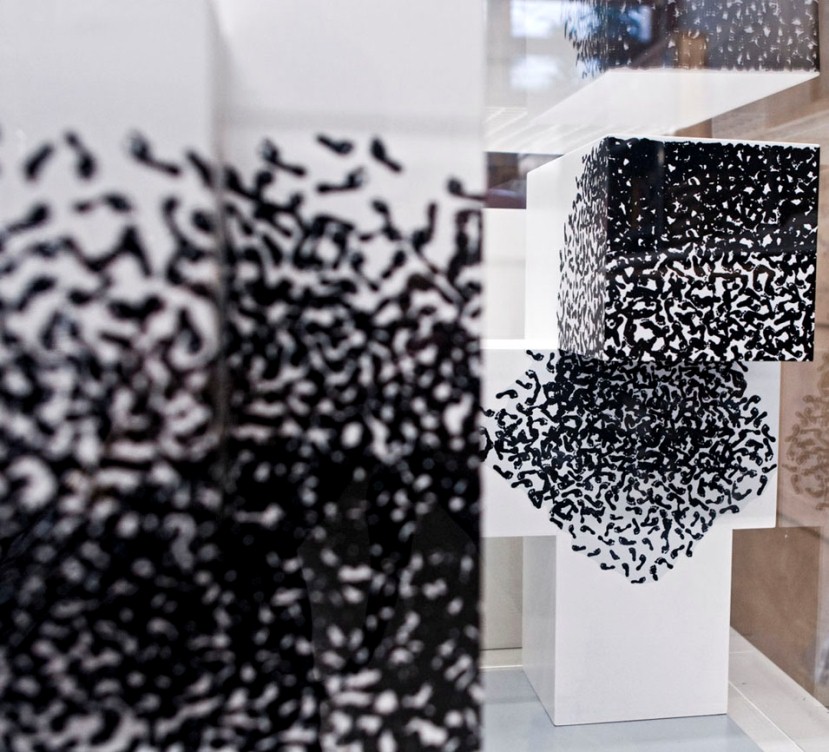 2004, Trienal Poligráfica, San Juan, Porto Rico / Maquete: Acrílico, gravação e corte a laser, impressão digital sobre vinil adesivo, pintura sobre madeira, 25 x 105 x 22 cm - Execução: Renato Pera e Marcelino Ros Lopez