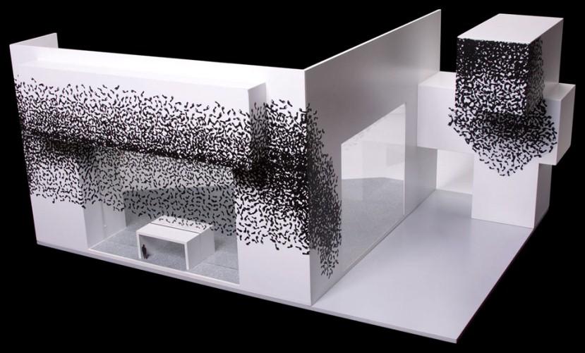 2004, El Cubo, SAPS – Sala de Arte Público Siqueiros, Cidade do México / Maquete: Acrílico, pintura sobre madeira, vinil adesivo, 53,5 x 80 x 78 cm - Execução: Renato Pera