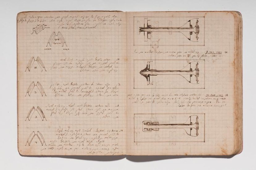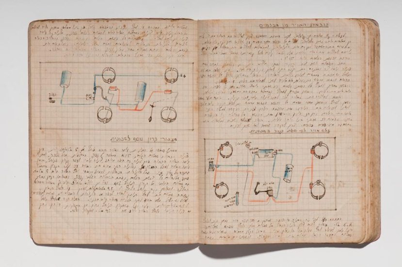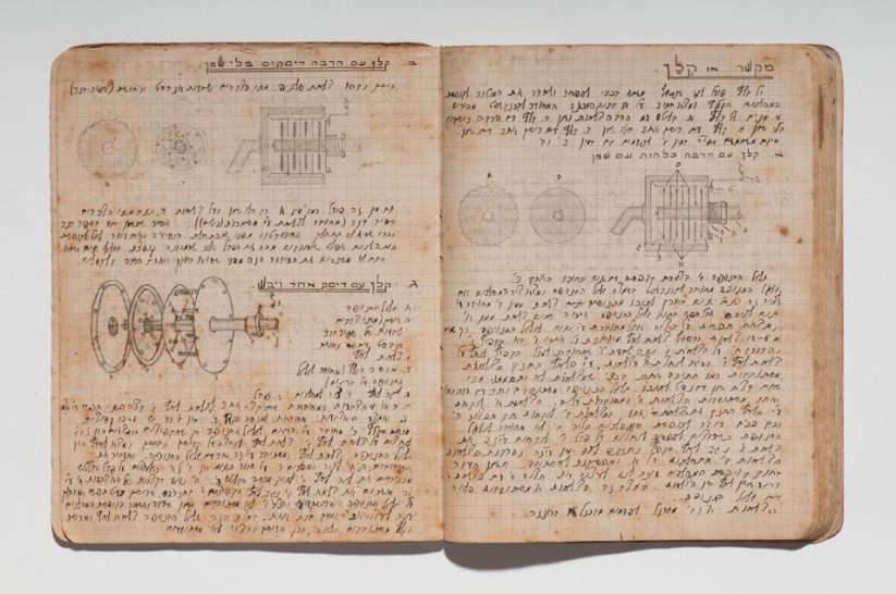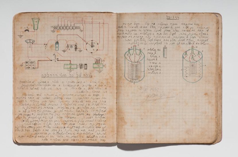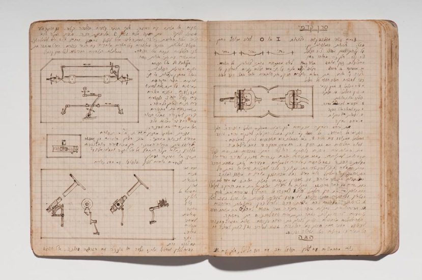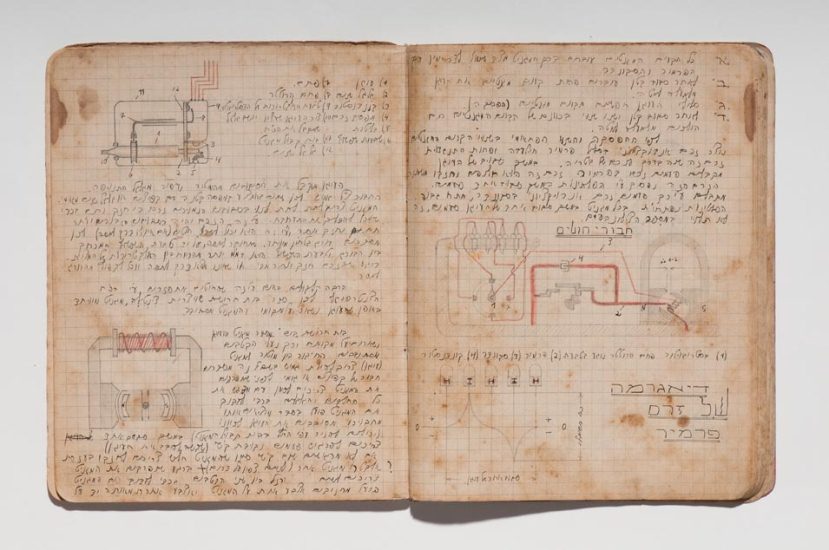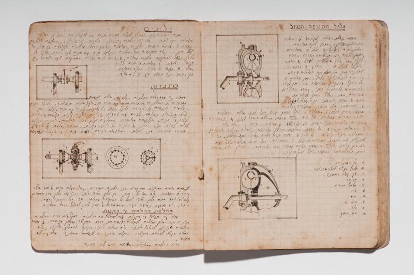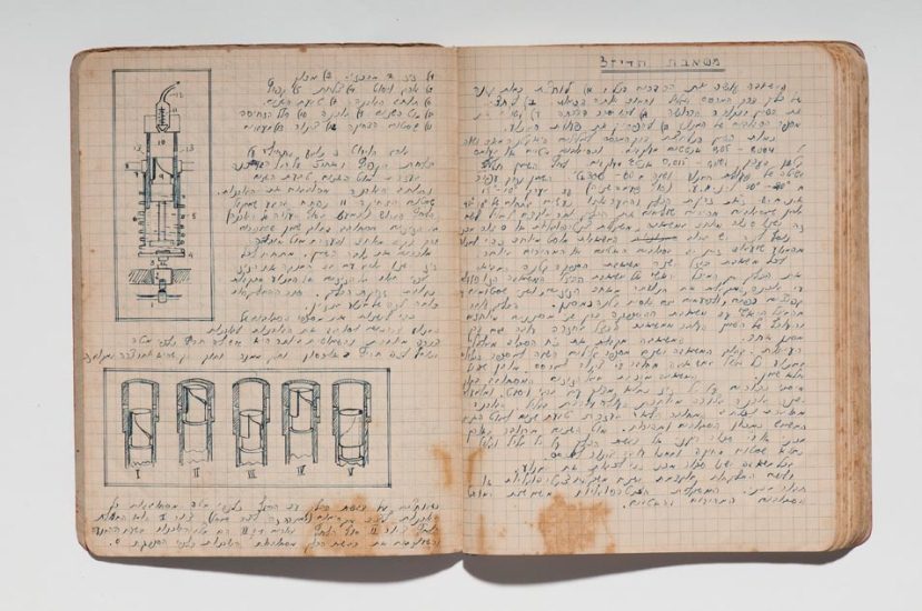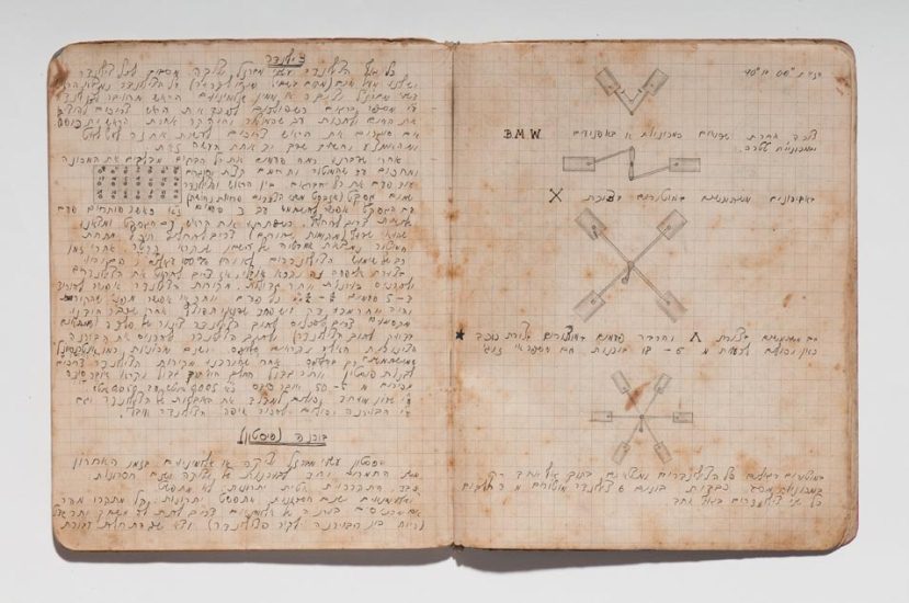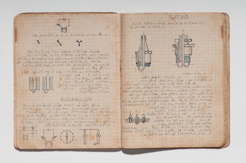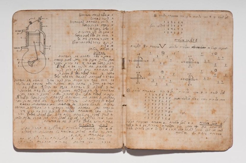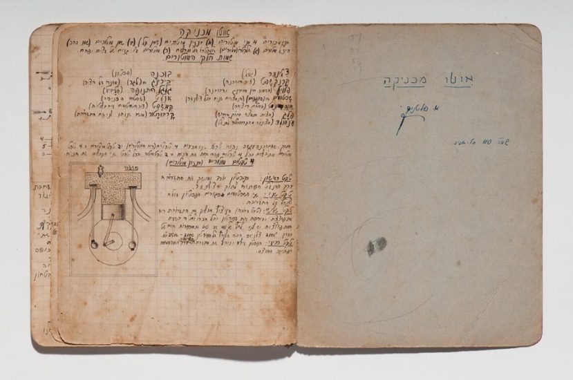 Caderno do curso de automecânica da Escola Técnica Montefiori, Tel Aviv, 1941−1945. Papel, tinta e grafite. original: coleção do artista | reprodução: Edouard Fraipont.
