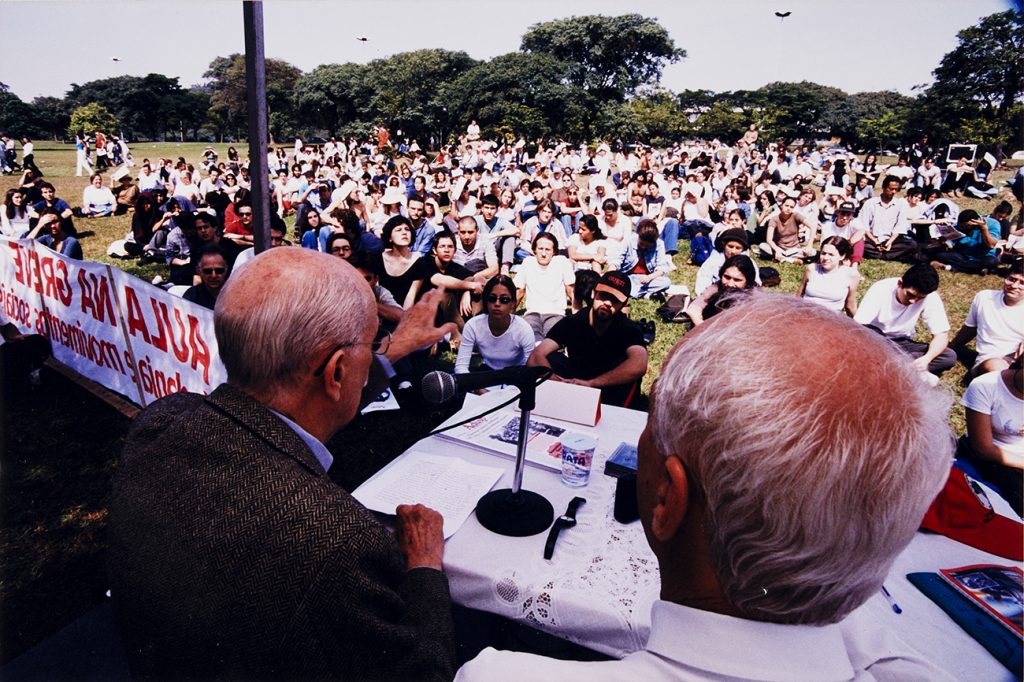 Antonio Candido em aula pública durante greve na Universidade de São Paulo (USP), em 2000.