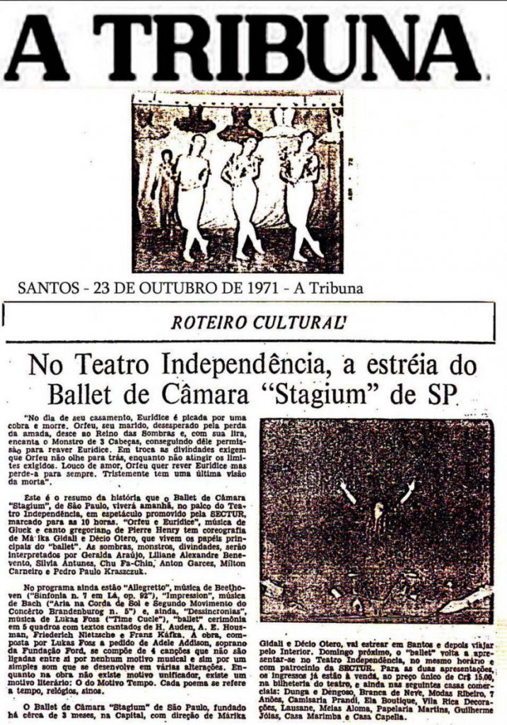 “Pensamos em criar um grupo artístico que se preocupasse com ideias”, escreveu Décio Otero sobre o início do Ballet Stagium, em outubro de 1971. Naquele ano, ele e Marika Gidali haviam dirigido, para a TV Cultura, a série Convite à Dança – programas de 45 minutos que apresentavam estilos variados – e decidiram que o trabalho começado ali devia continuar.