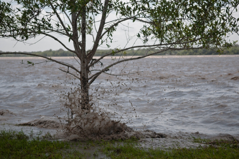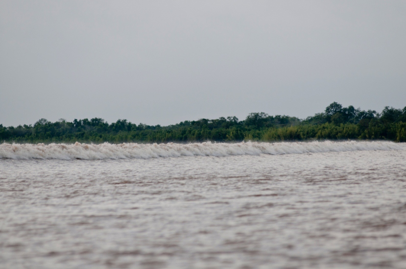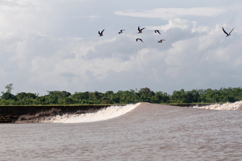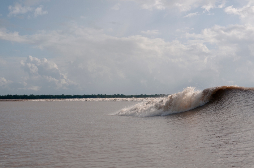 A pororoca é um fenômeno que ocorre quando as águas de um rio encontram as correntes do oceano, o que provoca ondas. No Brasil, esse fenômeno acontece em alguns pontos, entre eles a foz do Araguari, no Amapá, onde a equipe gravou parte dos sons que compõem a obra rio oir.