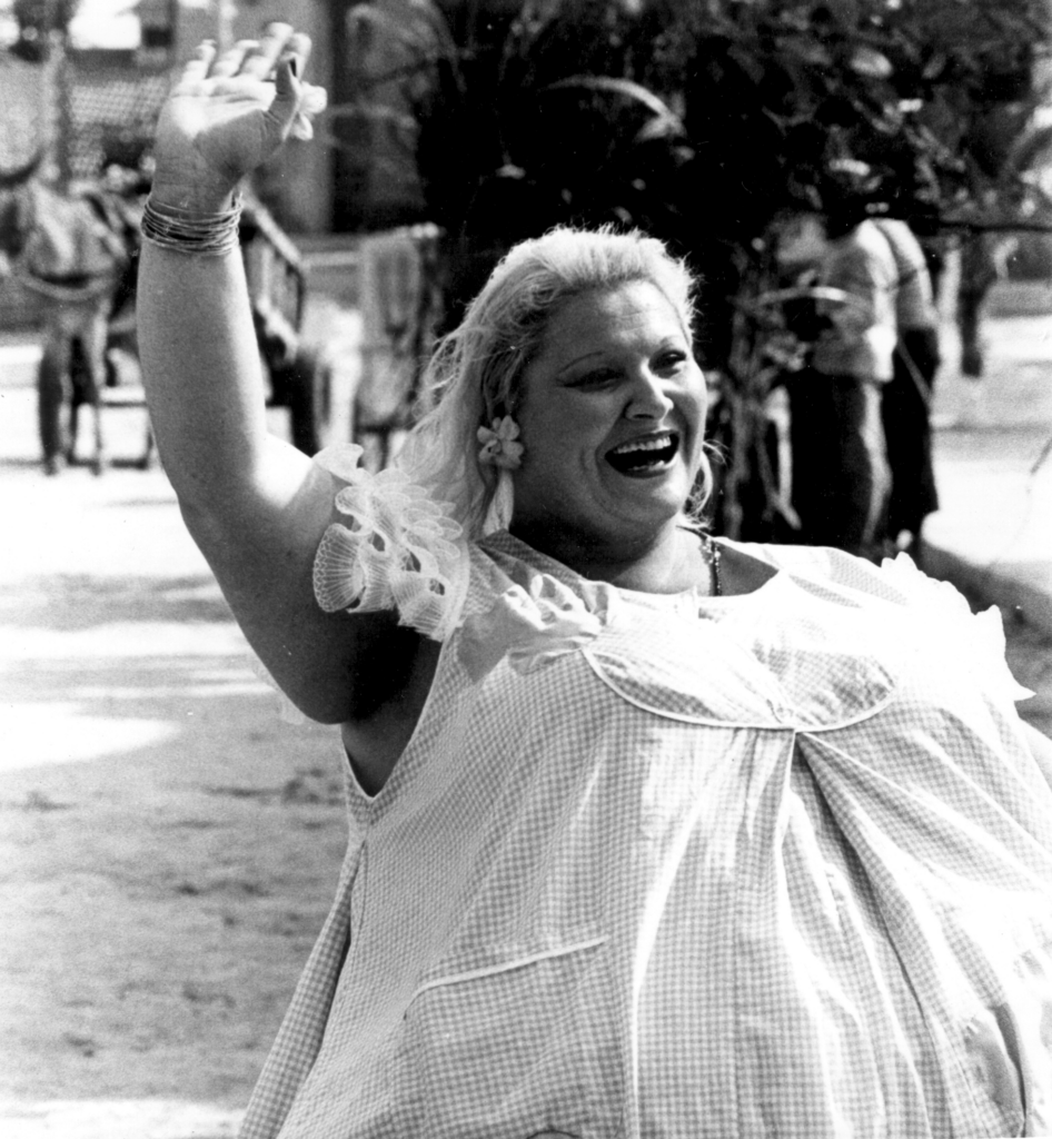 Dona Redonda (Wilza Carla), que explode de tanto comer, na novela Saramandaia (1976) (Foto: TV Globo/Acervo)