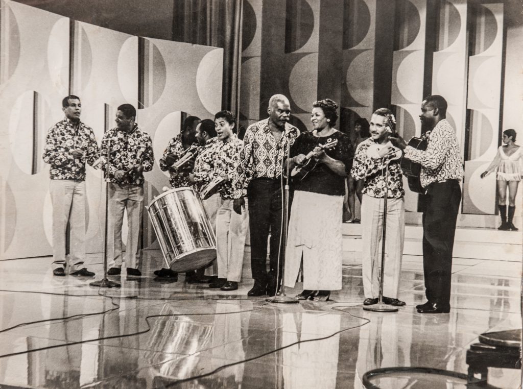 Dona Ivone Lara com Tio Fuleiro, em apresentação no programa de Flávio Cavalcanti na TV Tupi, em 1973 | imagem: Luiz Vieira