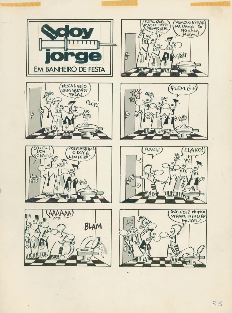 Drogas, mais drogas e rock’n’roll. Doy Jorge cheira até farinha de trigo, vara as noites travadão e trincadão, sai do boteco depois do dono e na segundona brava de manhã pega a fila do leite – para tomar uma vodka de saideira. Acompanhado de Carreira, Grinfa e Bagulhão – este sempre com um baseado gigante na boca –, o roqueiro ainda tem tempo de ensaiar com sua banda e fugir da polícia.