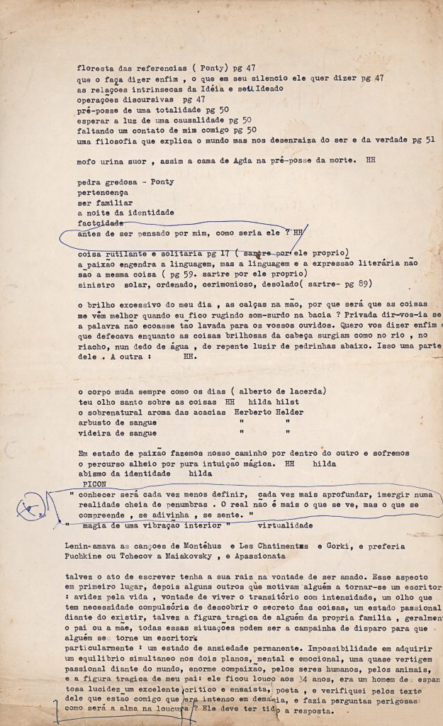Notas de leituras de Hilda e comentários sobre outros autores.