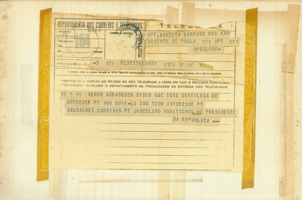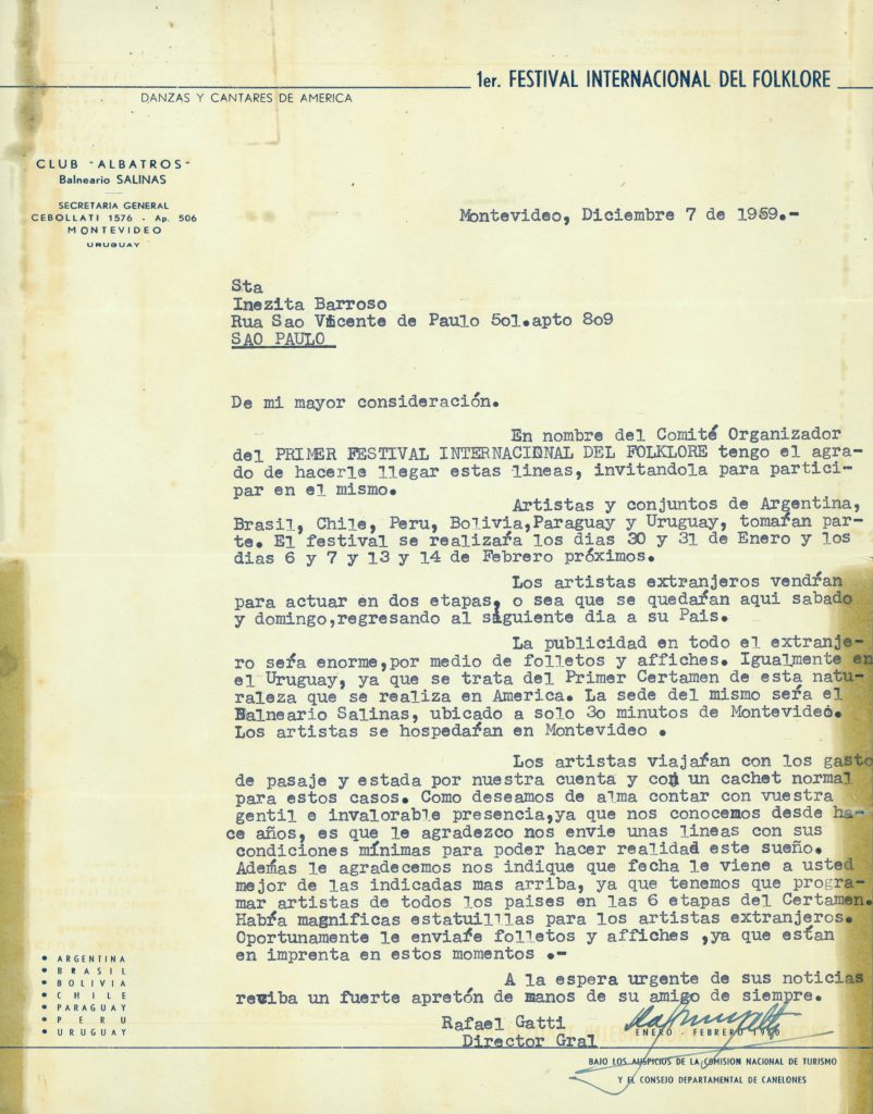 Algumas entrevistas foram feitas, apesar de ainda uma pequena parte para que o trabalho fosse concluído. Uma delas está aqui, como material inédito para a Ocupação Inezita Barroso. O disco sobre o qual Inezita conversa é seu primeiro LP de 12 polegadas, lançado pela Copacabana em 1958. Vamos Falar de Brasil tem capa branca, em que Inezita se volta aos céus e parece se render inteira à música com seu violão no peito.
