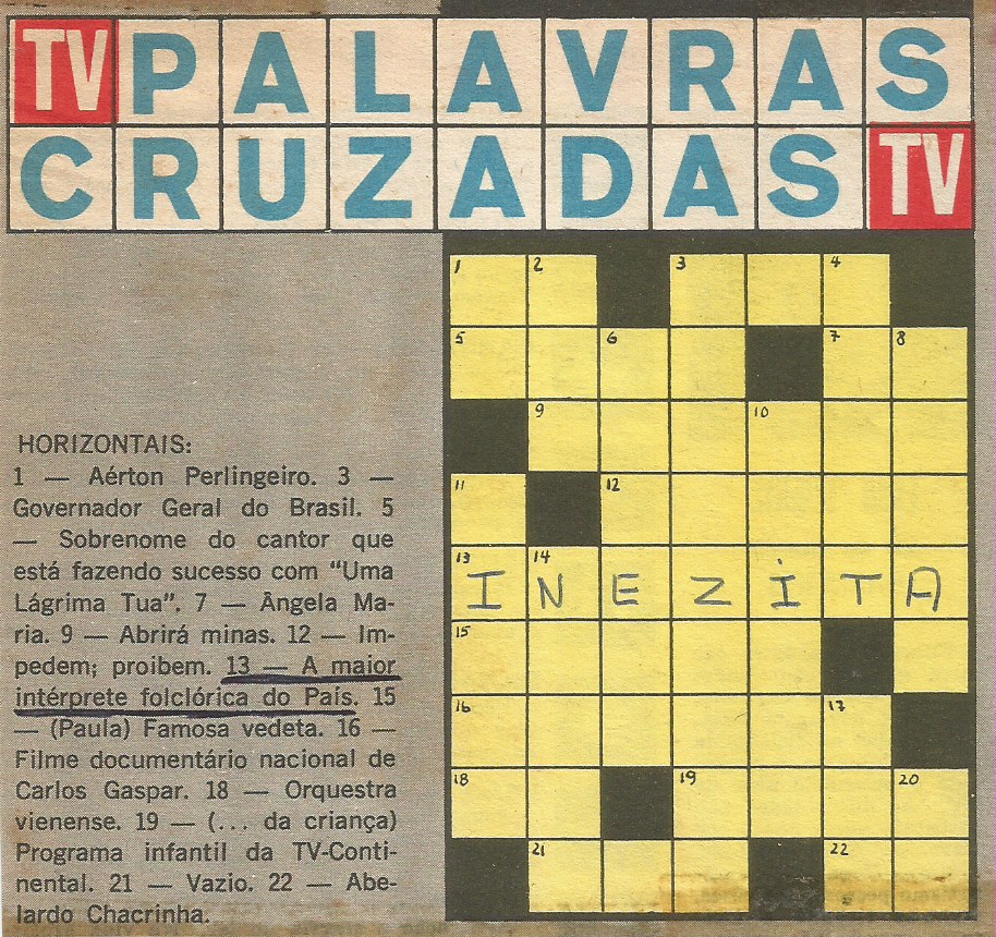 O segundo livro está garantido, a TV Cultura tem os arquivos. A qualquer hora surge alguém para escrevê-lo. O terceiro é mais difícil, porque precisaria, além dos filmes, da presença de Inezita para falar do tempo em que era uma jovem mulher sob os holofotes. Um mulherão, como se dizia antigamente. Discreta e reservada, nunca deu corda quando a conversa se encaminhava para esse campo.