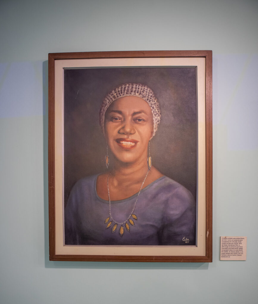 O quadro pintado pela artista Eliane em 2017 como um presente para Lia aparece em uma das cenas iniciais de Bacurau, de Kleber Mendonça Filho. O quadro aparece na cena em que Dona Carmelita (Lia de Itamaracá) está sendo velada | quadro: acervo Centro Cultural Estrela de Lia | foto: Matheus Castro