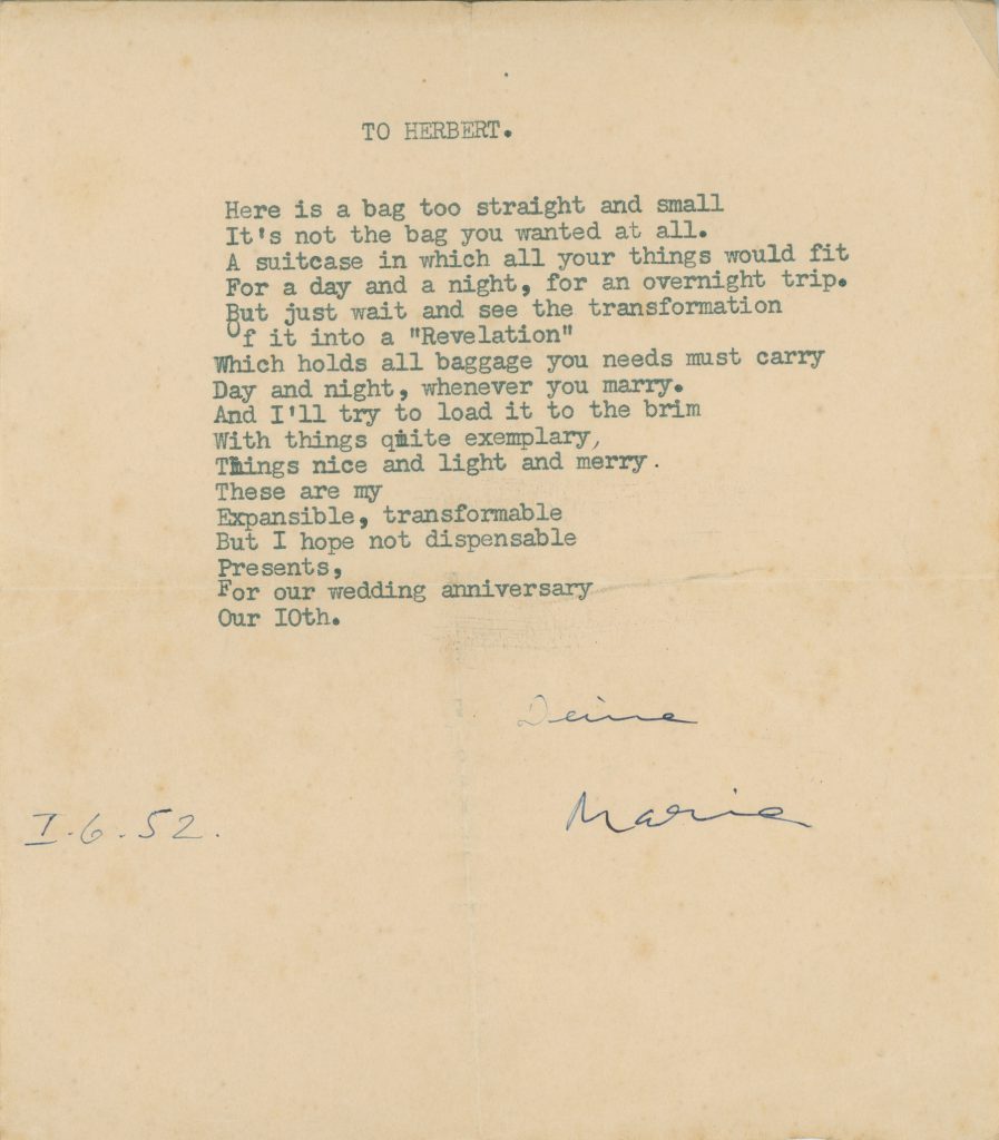 [carta de Herbert para Maria (1963) | originalmente em alemão com trechos em inglês]