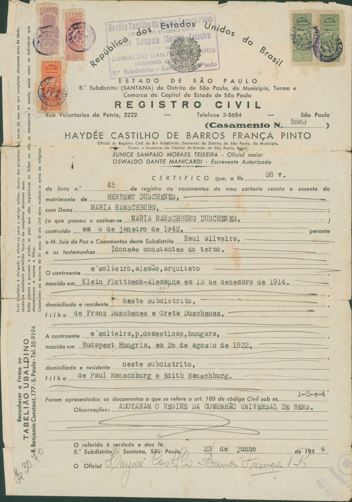 Herbert e Maria Duschenes vieram para o Brasil no final dos anos 1940. Naquele momento, o país, que mal havia saído do mundo rural, recebeu uma leva de europeus altamente intelectualizados e conscientes do papel que tinham no sentido de oferecer um conteúdo cultural de uma Europa que, por um lado, desabava por causa das guerras e, por outro, vivia uma efervescência enorme repensando sua arte, sua cultura – uma explosão criativa sem precedentes em todas as áreas.