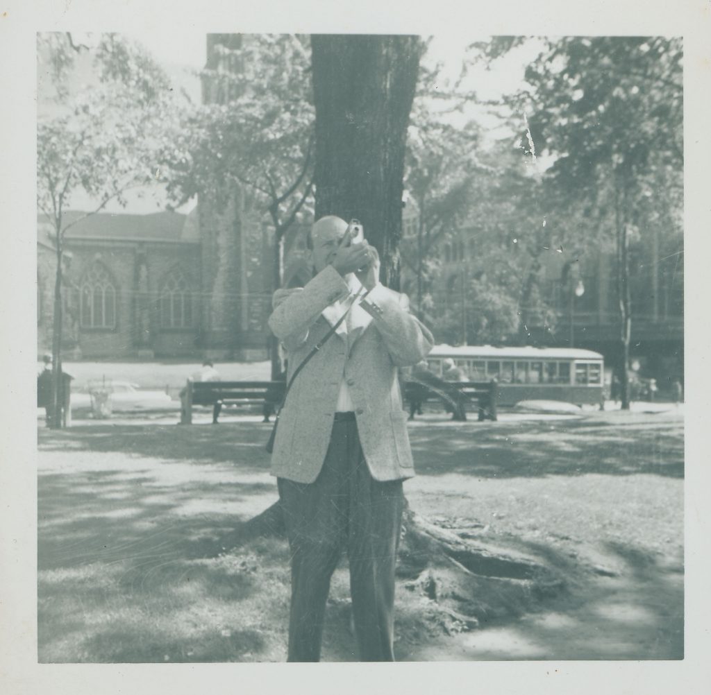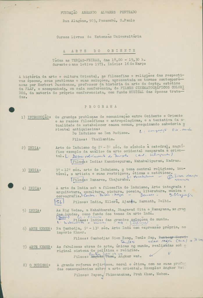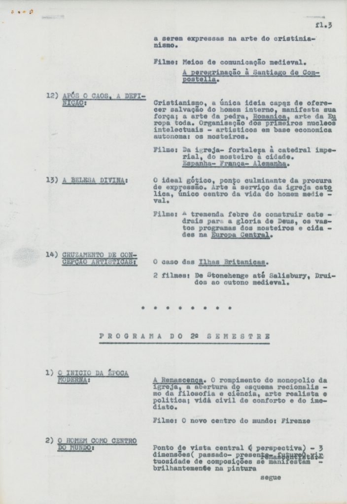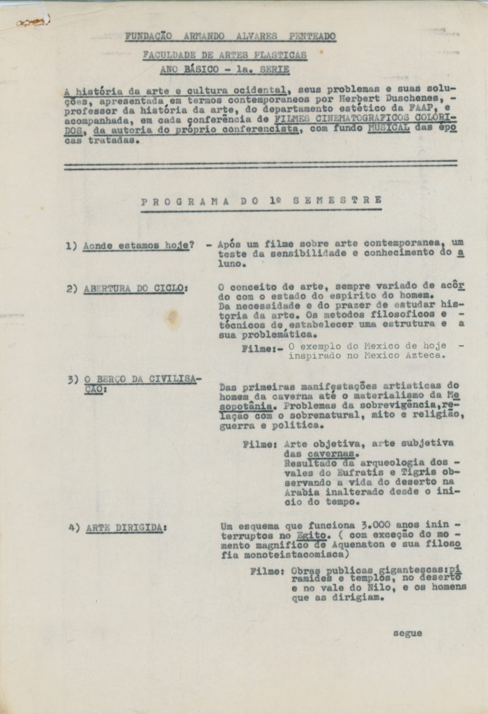 Para conhecer melhor Herbert Duschenes, seu método de ensino e seu olhar de cineasta, reunimos aqui alguns programas de aula do professor – que evidenciam a abrangência no seu ensino da história da arte – e trechos dos filmes gravados por ele em suas viagens. Nas fotos, ele sempre com a câmera em mãos, como uma extensão de seu corpo.