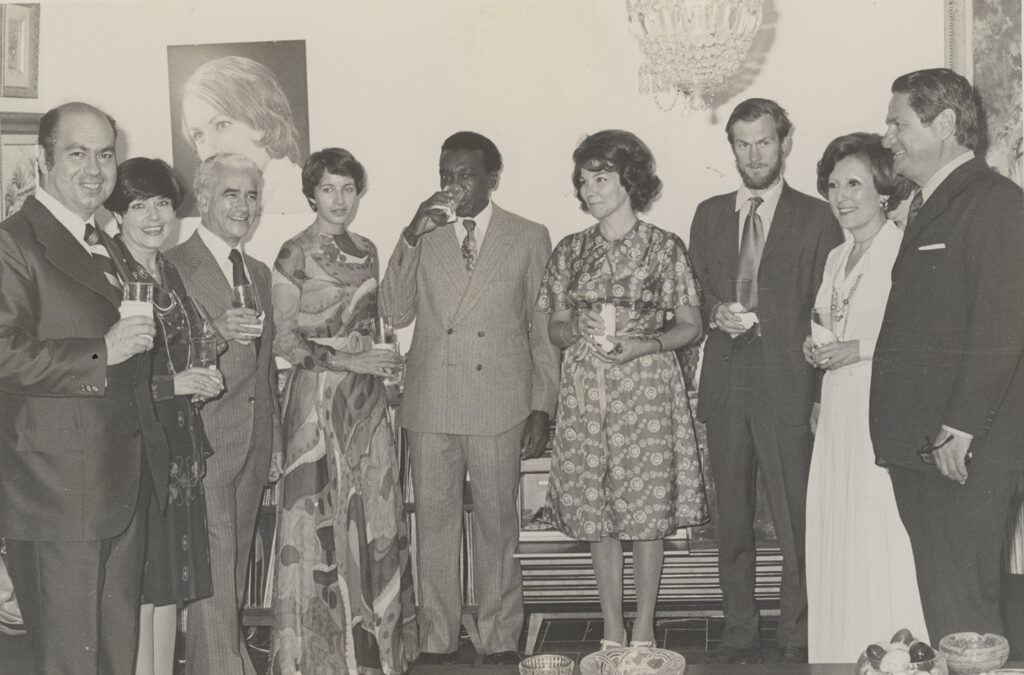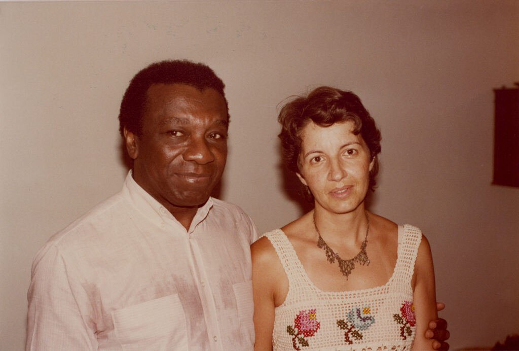 Milton Santos e sua esposa, Marie-Hélène, em evento social do primeiro curso de pós-graduação em geografia de Caracas, na Venezuela, 1976. | acervo da família