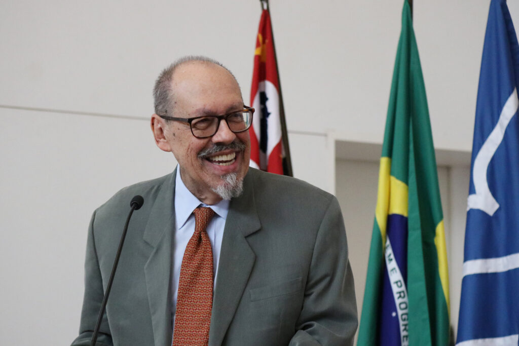 Paulo Herkenhoff na cerimônia de posse da Cátedra Olavo Setubal de Arte, Cultura e Ciência, do Instituto de Estudos Avançados da Universidade de São Paulo (IEA USP), ocorrida em 2019. O crítico de arte dividiu essa liderança com a bioquímica Helena Nader | foto: Clara Gomes Borges/Instituto de Estudos Avançados da Universidade de São Paulo (IEA USP)
