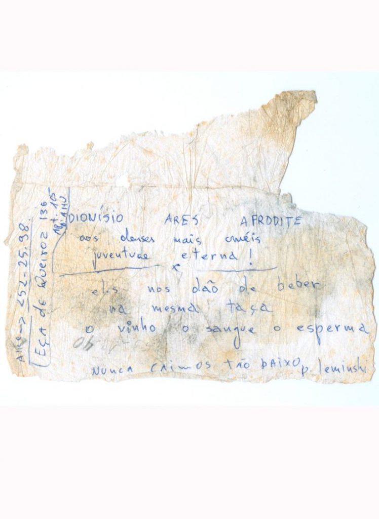 Original de poema musicado e gravado por Moraes Moreira no disco Pintando o Oito | imagem: arquivo da família Leminski | música: Paulo Leminski e Moraes Moreira. Interpretação de Moraes Moreira