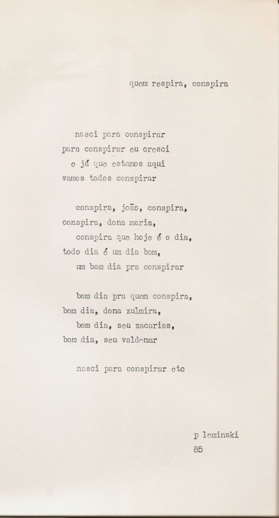 Reprodução de original datilografado da letra inédita Quem Respira, Conspira, de Paulo Leminski | imagem: arquivo da família Leminski