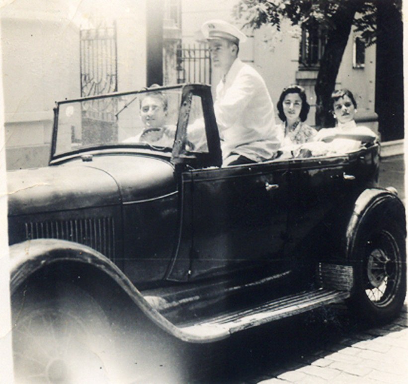 Zé e Lala no calhambeque, com amigos em Araraquara