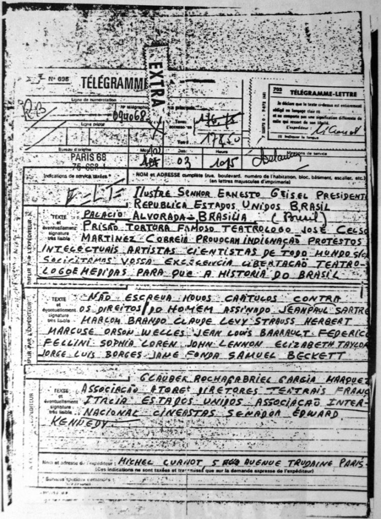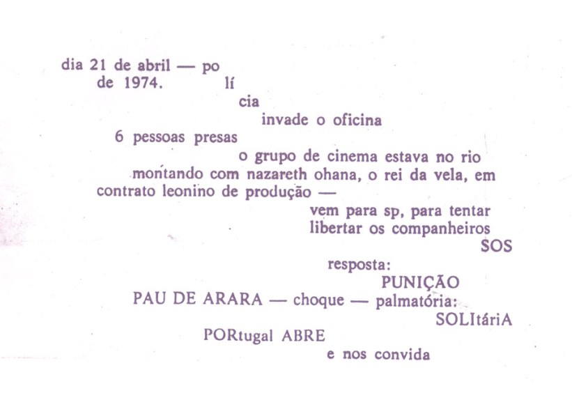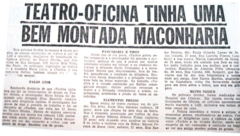 Quando desci do apartamento, um cara me botou um capuz. Me puseram no carro e levaram para o Dops. Fui de capuz porque tem duas prisões. Tem a prisão legal e, atrás de uma parede que se move, você desce para um subterrâneo, chamado de ‘‘fornão”, onde tem a tortura. E você não vê onde está. Te jogam numa cela de cimento. Você fica isolado, luz acesa. E só ouve, de repente, o grito de tortura e as chicotadas.