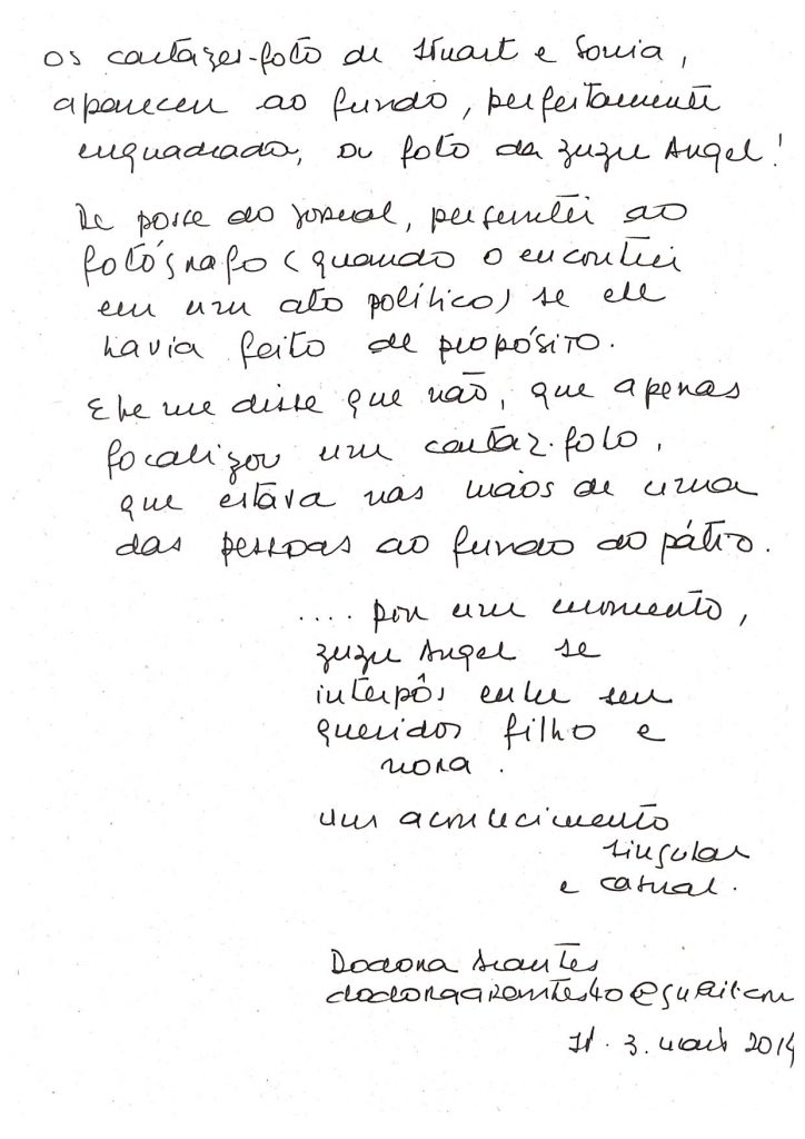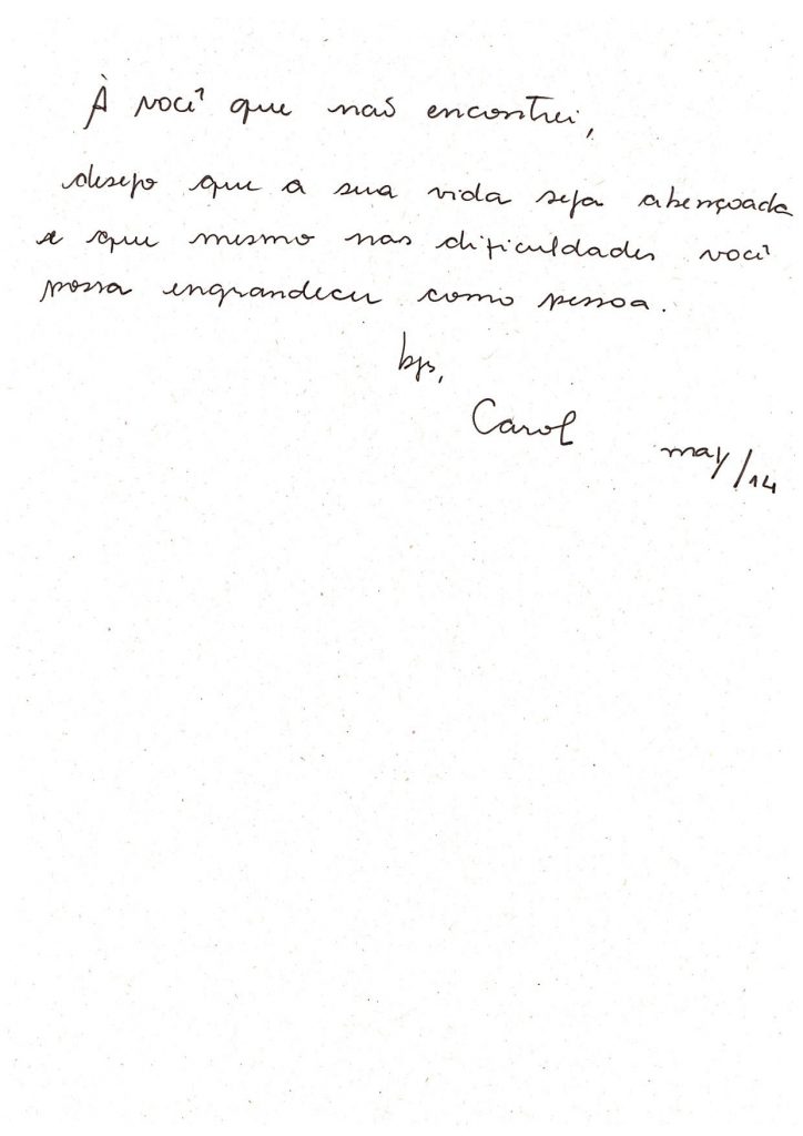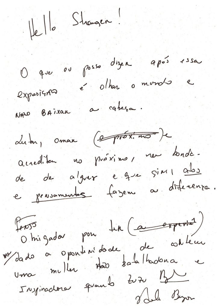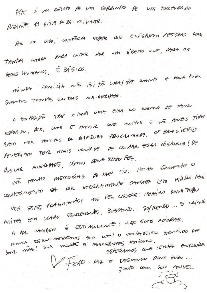 Além de conferir algumas dessas correspondências, o visitante da mostra Ocupação Zuzu foi convidado a escrever cartas para alguém que ele ainda não encontrou ou conheceu. Durante o período da exposição elas foram deixadas no espaço expositivo para que outras pessoas pudessem lê-las. Agora todas as mensagens escritas pelos visitantes estão publicadas no site.