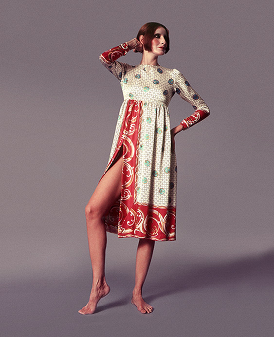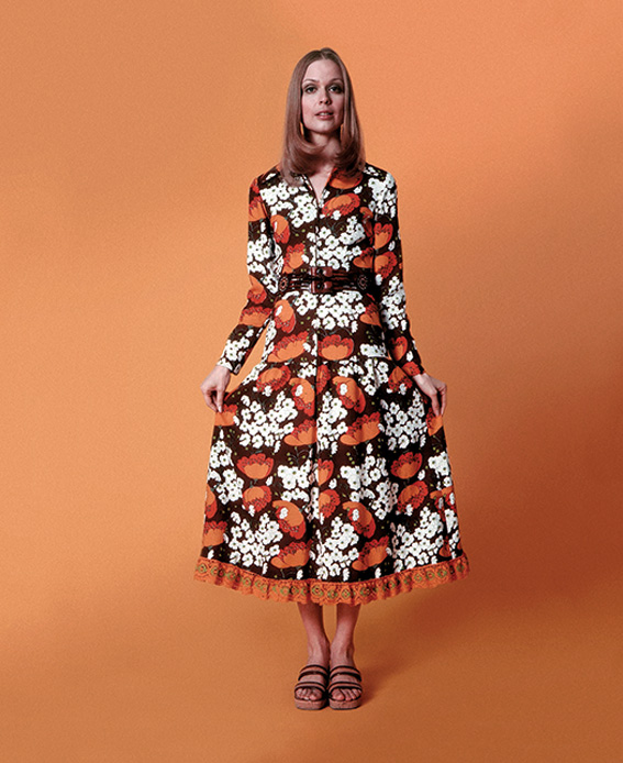 “Da Inglaterra a influência veio especialmente de Mary Quant (modelo e mais tarde estilista), que difundiu a minissaia e a meia-calça através do próprio uso e da sua loja ‘Bazaar instalada em King`s Road. De Londres também veio a moda jovem da butique ‘Biba’ de Barbara Hulanicki, que trouxe muita influência; e, como não podiam deixar de ser citados, os Beatles que também ditaram moda com seus terninhos, cabelos “tijelinha” e modelos coloridos. Com a consolidação da moda hippie e de sua associação com a filosofia oriental hindu, eles adotaram, após terem ido à Índia, um visual com características indianas e ajudam a difundir esse aspecto na moda jovem.” (…) “De um modo geral, a moda feminina dos anos 60 era de aspecto ingênuo onde Twiggy, outra grande modelo, difundiu um visual de menina com cabelos curtos e olhos maquiados no aspecto de ‘olho de boneca’ com rímel ou cílios postiços.”