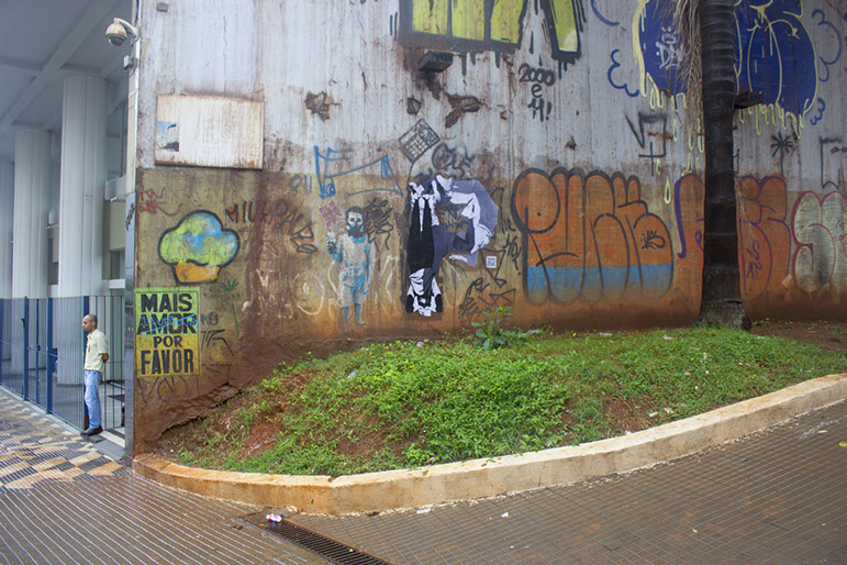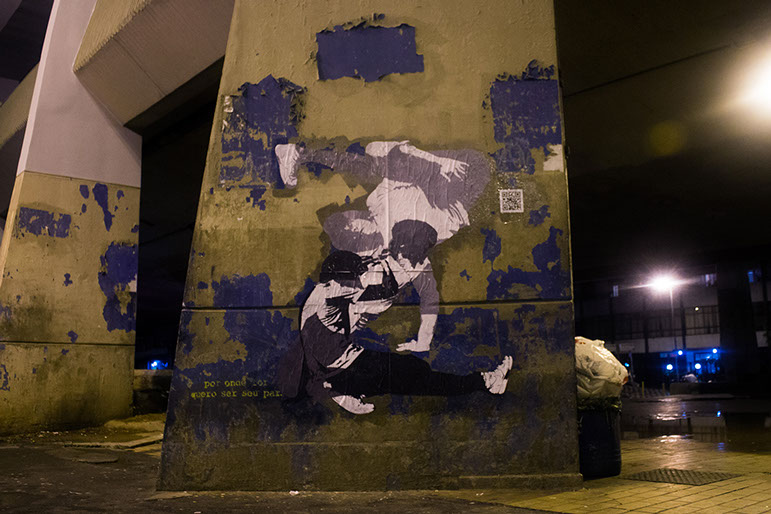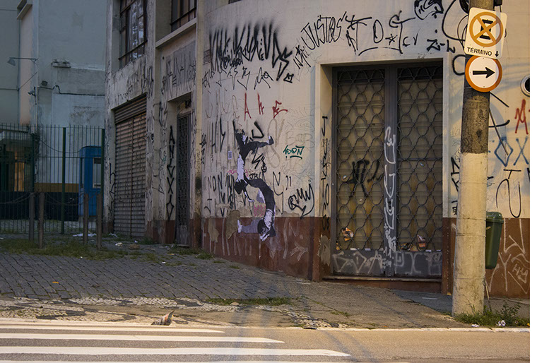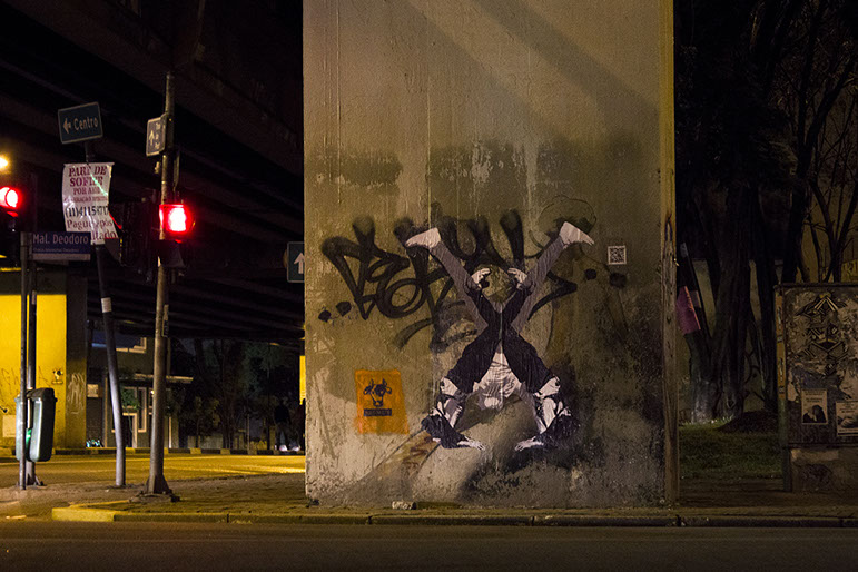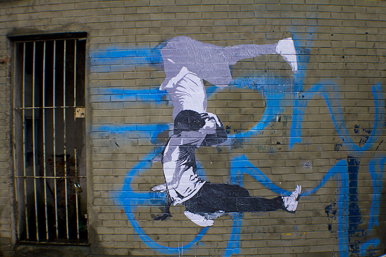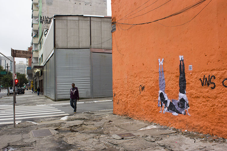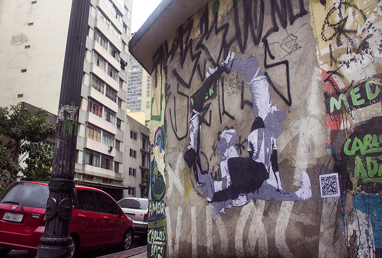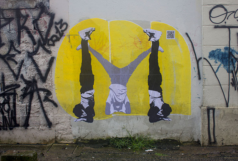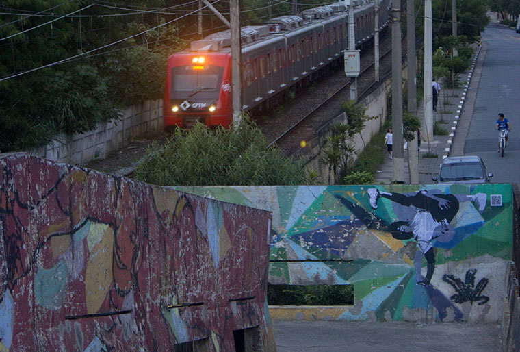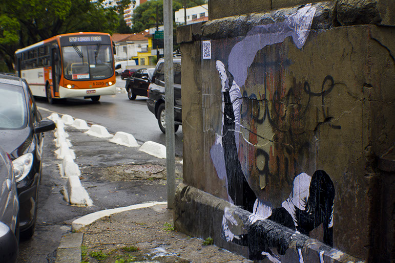 O break, estilo de dança que compõe a cultura hip-hop junto com o grafite e o rap, tem no cenário urbano o seu ambiente. Neste projeto, Caio Yuzo se apropria de movimentos característicos dessa manifestação artística para construir, em um vídeo, as 26 letras do alfabeto com o próprio corpo. Além do filme, o coletivo produziu lambe-lambes com as letras formadas pela coreografia. Colados no centro de São Paulo, os cartazes chamavam atenção para um QR code que levava para a página do vídeo na internet. Colaboraram: Georges Boris, Bruno Zaitsu, Lina Nagano e Susie Fugii.