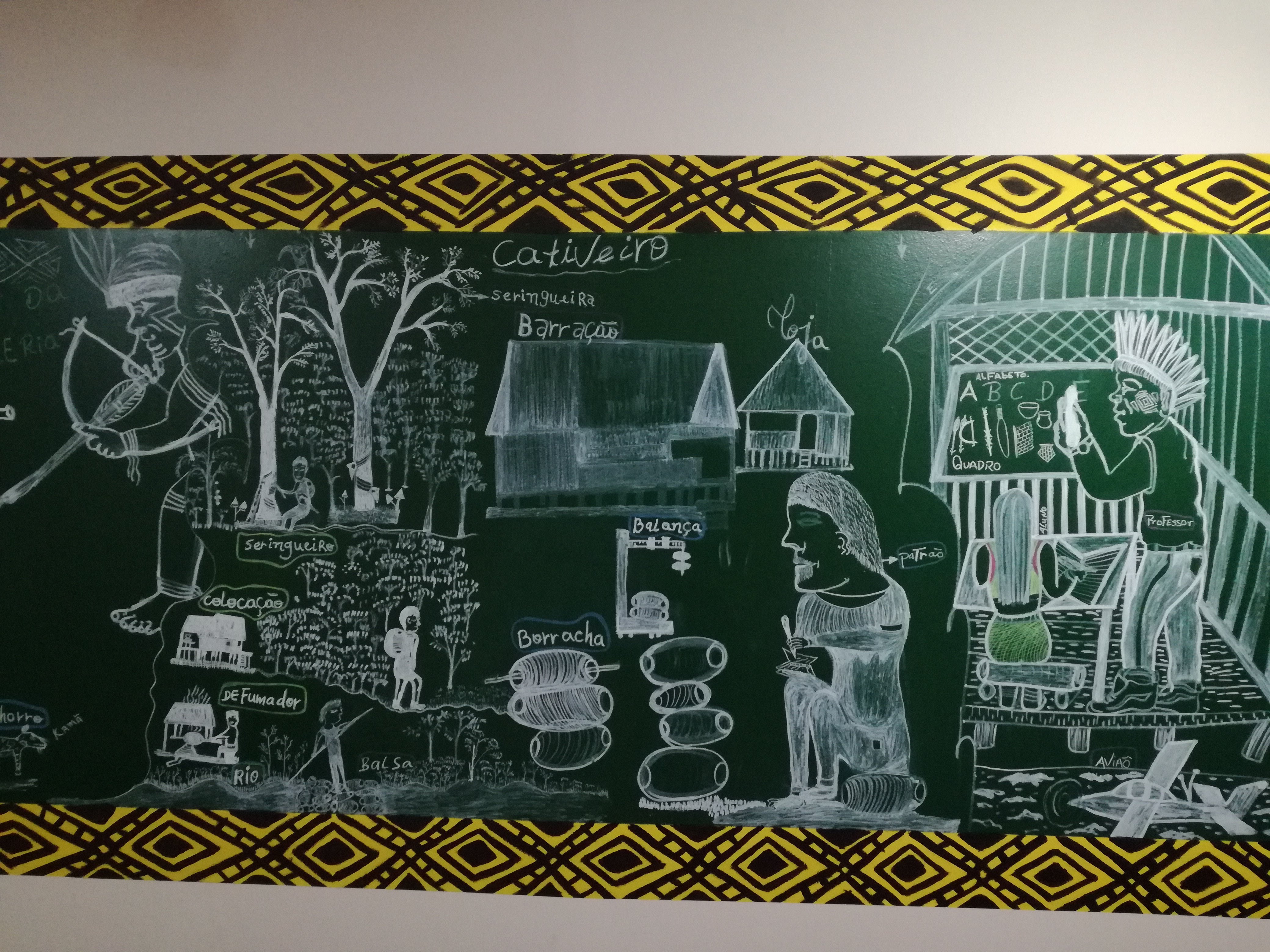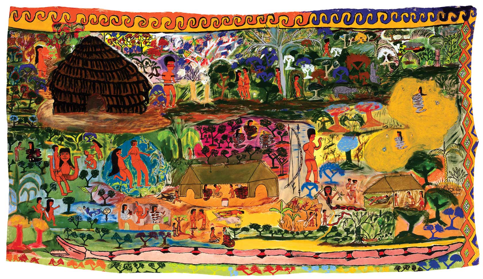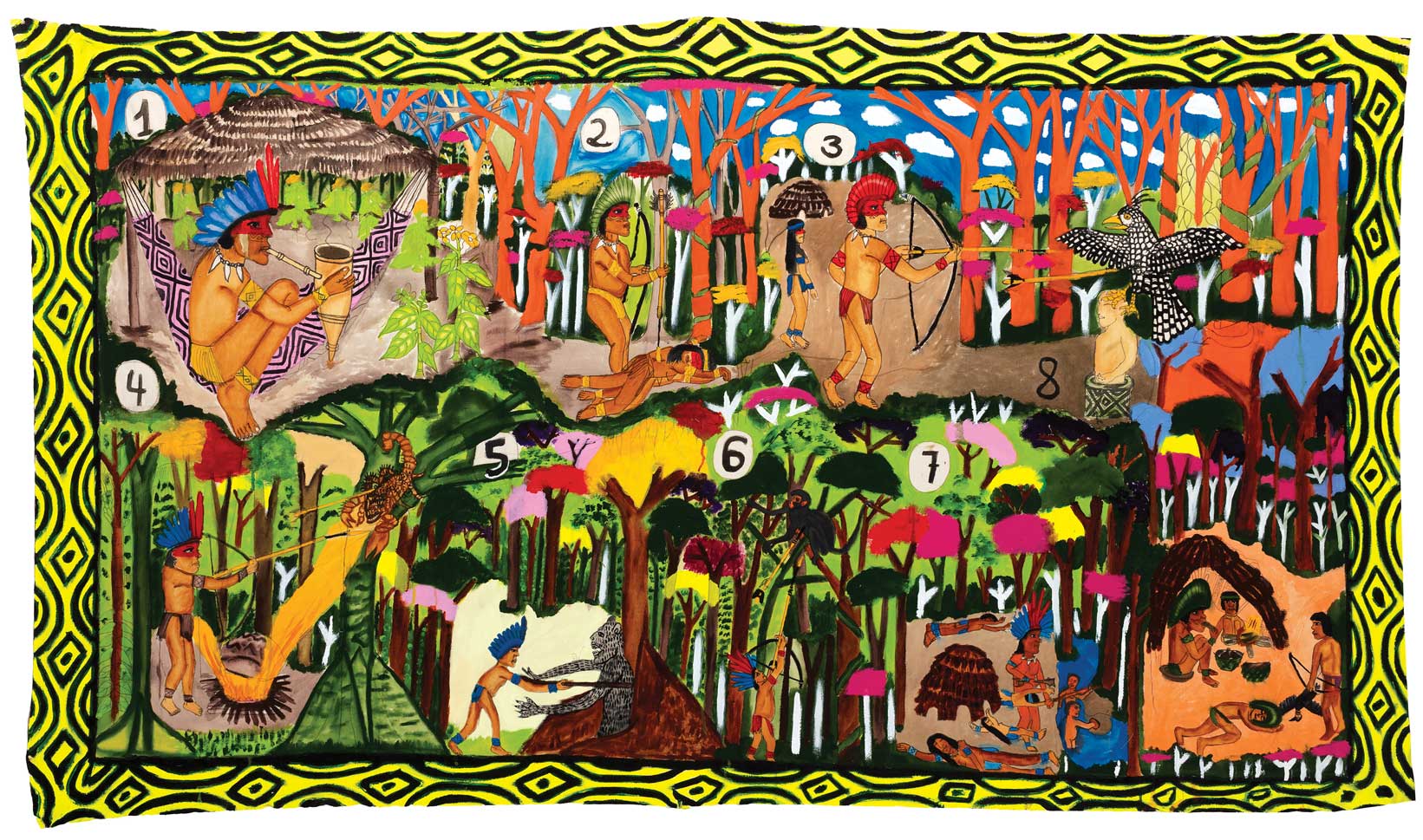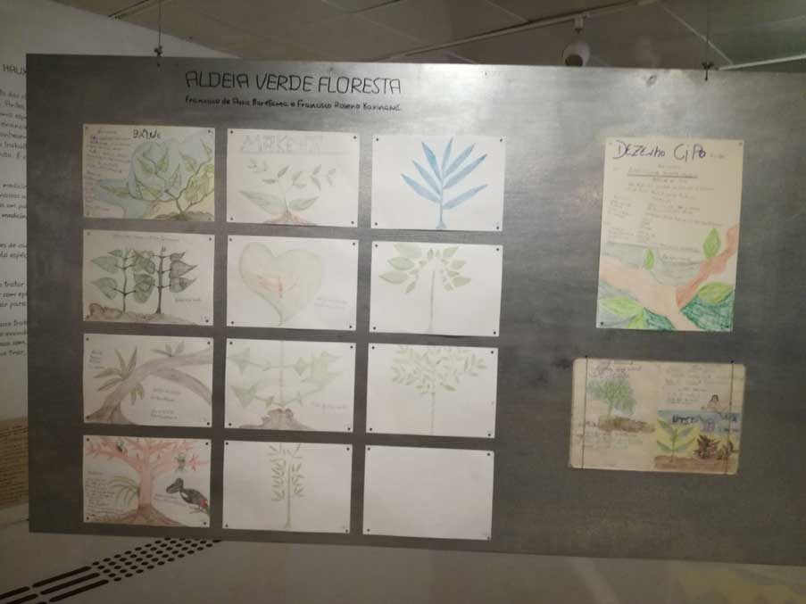 Histórias dos antigos expostas em grandes telas produzidas em oficinas de pintura em duas aldeias foram reunidas na publicação impressa feita especialmente para a exposição. Além de 13 narrativas que contam a origem do povo e de seus costumes, o livreto traz textos sobre a cultura Huni Kuin.